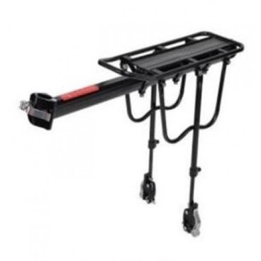 универсальный, алюминиевый, крепление на подседельный штырь с помощью эксцентрика, с дополнительными боковыми дугами, и упорами на перья с помощью эксцентриков, до 20кг, черный